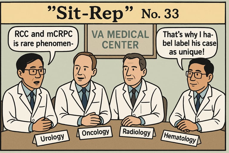 It looks like I’ve been saddled with RCC and mCRPC at the same time. This is what the book says about that: “Synchronous metastatic castration-resistant prostate cancer (mCRPC) and renal cell carcinoma (RCC) is a rare phenomenon.”